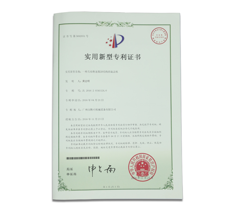 騰卓機械專利生產(chǎn)證書,專業(yè)制造包裝設(shè)備的生產(chǎn)廠家,全自動及半自動的洗瓶機,烘干機,灌裝機,旋蓋機,貼標(biāo)機,套標(biāo)機,打碼機等非標(biāo)定制自動化包裝生產(chǎn)線