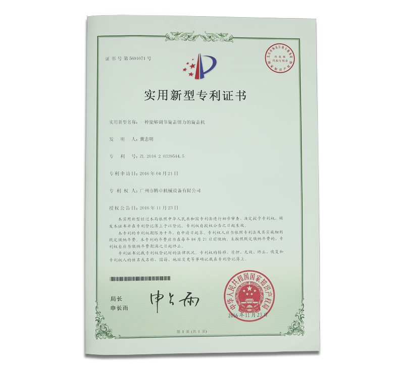 騰卓機(jī)械專利生產(chǎn)證書,專業(yè)制造包裝設(shè)備的生產(chǎn)廠家,全自動及半自動的洗瓶機(jī),烘干機(jī),灌裝機(jī),旋蓋機(jī),貼標(biāo)機(jī),套標(biāo)機(jī),打碼機(jī)等非標(biāo)定制自動化包裝生產(chǎn)線