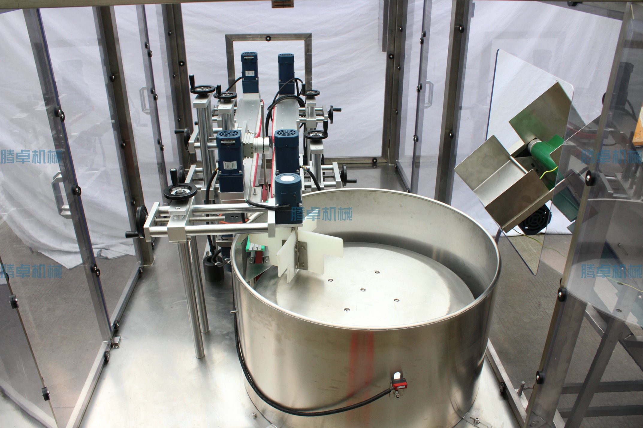 本機采用了兩級對口的機構(gòu),確保針管插入率100%,無論藥具歪斜程度較大或瓶口較小,都無須擔心。本機灌裝速度連續(xù)可調(diào)。